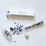 Ezek a csiszolt szodalit drágakő forgácsok egy csavaros tetejű üvegcsőben vannak, hogy könnyedén szétoszthatók legyenek az üveghengerek, spray-k és mintaampullák között. Mivel ezek a drágakövek elég kicsik ahhoz, hogy beférjenek egy szabványos 10 ml-es görgős üveg nyílásába, ezért bátran kiválaszthatja Ön is, hogy mennyit szeretne áttenni görgős üvegébe.
