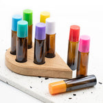 Szeretné megjeleníteni és tárolni az üvegeit? Weboldalunkon igényeinek megfelelő, különböző Roll-on, görgős üveg tárolókat talál az üvegek rendezéséhez és a könnyű hozzáféréshez. A bükkfából készült aromatömbünkben 6 darab roll on üveg fér el, melyhez tartozik egy fehér kistálca további üvegek tárolásához.