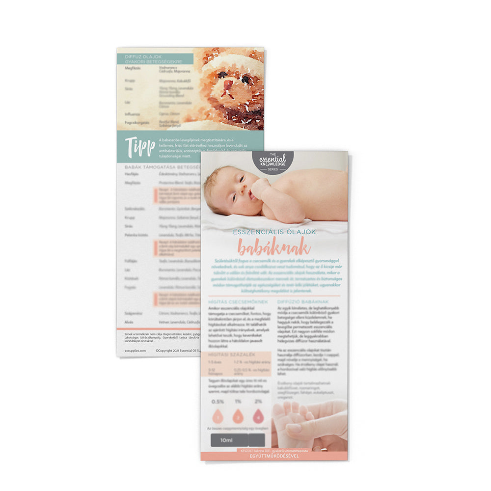 Információs kártyáinkat "Esszenciális olajok babáknak" 25 darabos csomagban is megvásárolhatja.