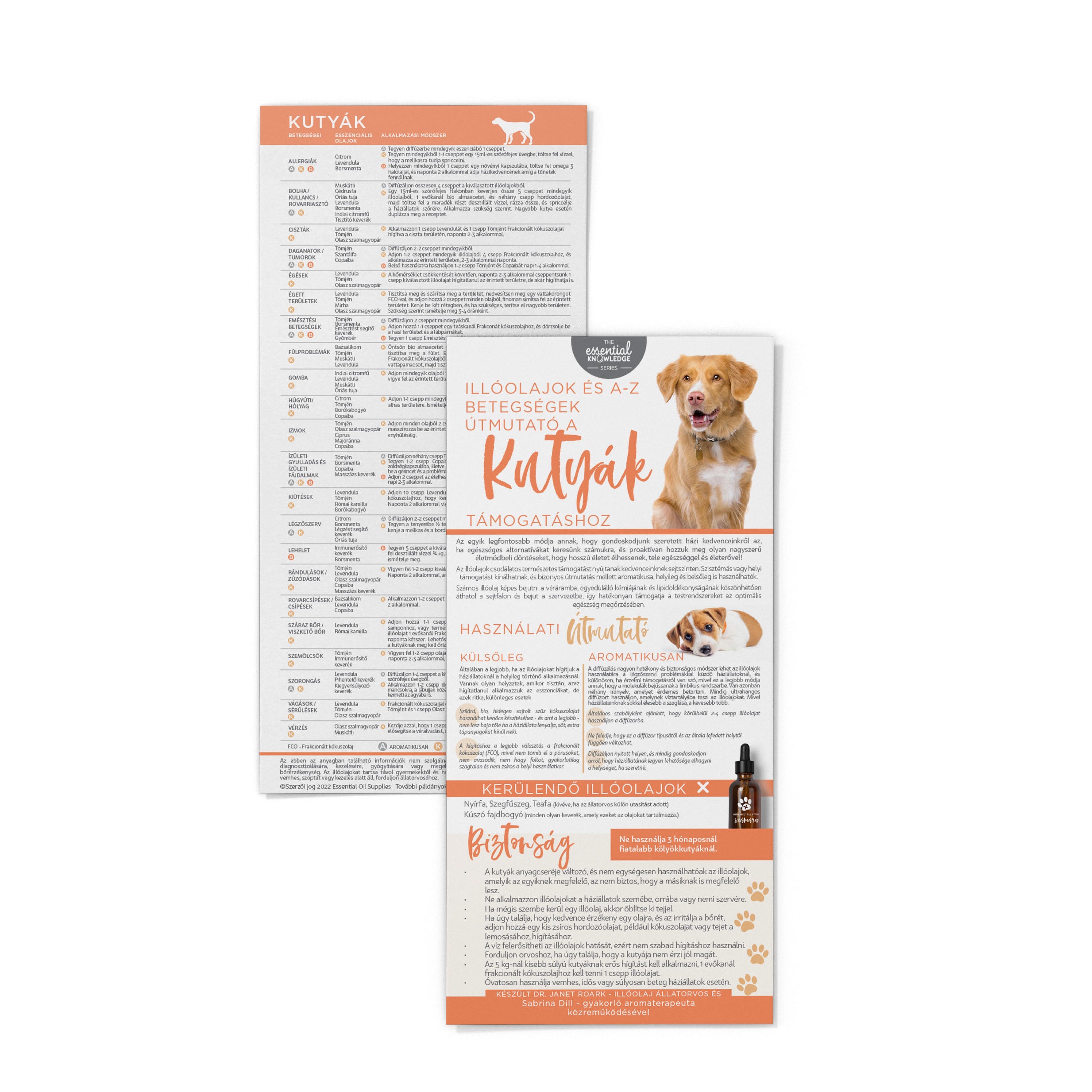 Információs kártyánkat "Illóolajok és A-Z betegségek útmutató kutyáknak" csomagban is megvásárolhatja.