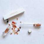 Tartalom: Karneol drágakő tubus, dobozban, 10 g (elegendő 3 x 10 ml-es golyós üveg részleges feltöltéséhez).