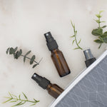 Tartalom: 5 darab 15 ml-es borostyánszínű üvegcsepalack és pumpás ködpermetező fej és átlátszó kupak