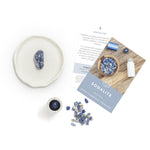 A készlet 3 db Szodalit drágakő-görgőfejet és 3 db angol nyelvű információs kártyát tartalmaz. A kártyák bemutatják, milyen érzelmi és mentális területekhez szokták társítani a Szodalitot, és illóolaj-párosítási javaslatokat is adnak.