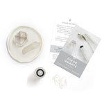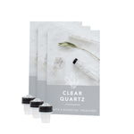 A készlet 3 db Tiszta kvarc drágakő-görgőfejet és 3 db angol nyelvű információs kártyát tartalmaz. A kártyák bemutatják, milyen érzelmi és jóléti területekhez szokták társítani a tiszta kvarcot, és ötleteket adnak az illóolajok párosításához is.
