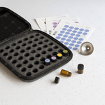 Vigye magával olajmintáit mindenhová a kizárólagosan tervezett Essentially Inspired kemény héjú tokkal, amely akár 49 mintaampullát is befogad egy rögzített szürke habbetétben, amely 1ml-es és 2ml-es mintaampullák elhelyezésére alkalmas. A tok belsejében egy praktikus tasak is található a névjegykártyák elhelyezésére.