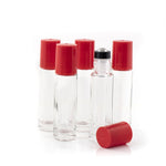 Tartalom: 5 darab 10ml-es átlátszó üveghenger, rúzsos csók (piros) kupakkal és új stílusú rozsdamentes acélgolyóval.