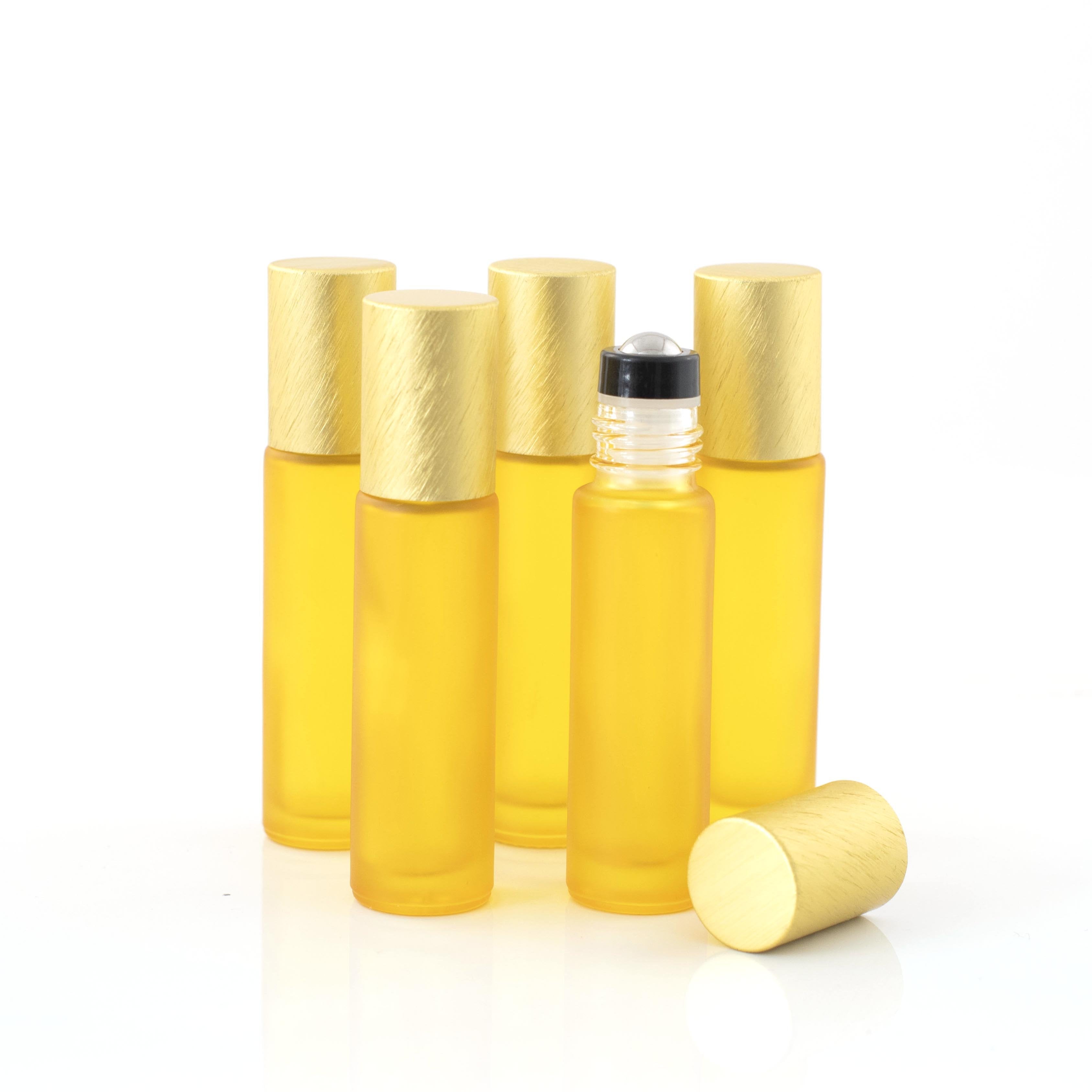 Tartalom: 5 darab sárga matt Deluxe görgős Roll-on üvegpalackok, prémium rozsdamentes acél görgők és metál sárga fémkupakok.