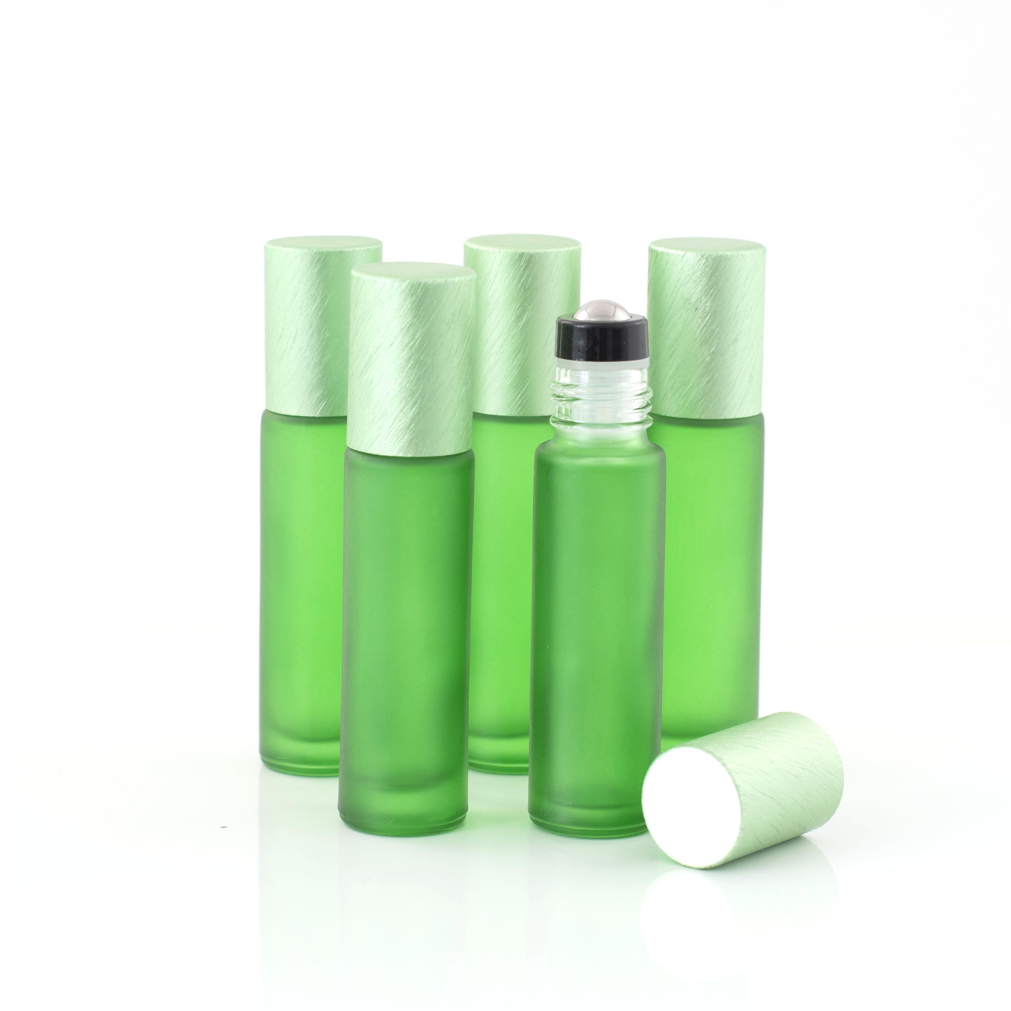 Tartalom: 5 darab zöld matt Deluxe görgős Roll-on üvegpalackok, prémium rozsdamentes acél görgők és metál zöld fémkupakok.