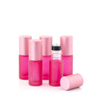 5 ml-es (5 db) Deluxe pink, matt Roll-on üvegpalack, metál rózsaszín fémkupakkal és prémium görgőkkel