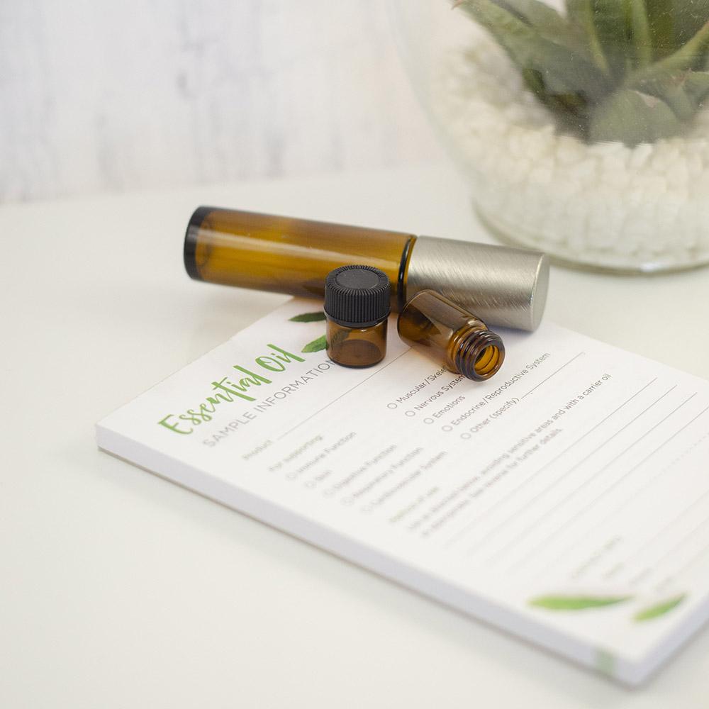 Mindössze másodpercekig tart kitölteni, és lehetővé teszi, hogy világos utasításokat adjon kapcsolatainak arról, hogy az Ön által adott minta a test mely területét támogatja, továbbá részletes tájékoztatást arról, hogyan használhatják fel azt a legoptimálisabban. Az alján található egy kényelmesen letéphető rész, amely lehetővé teszi, hogy rögzítse kapcsolattartói adatait. A tépőtömb lapjainak hátoldala tartalmazza a legfontosabb illóolaj használati és biztonsági utasításokat, valamint egy helyet az Ön elérhetőségeinek feltüntetésére - ideális kiegészítője az üzleti eszköztárának.