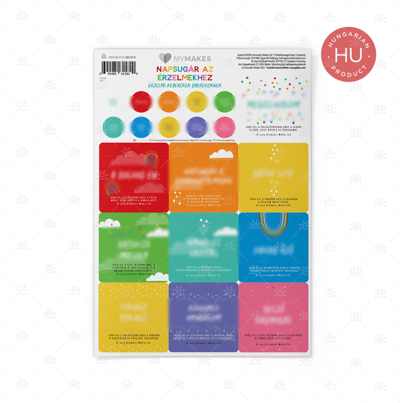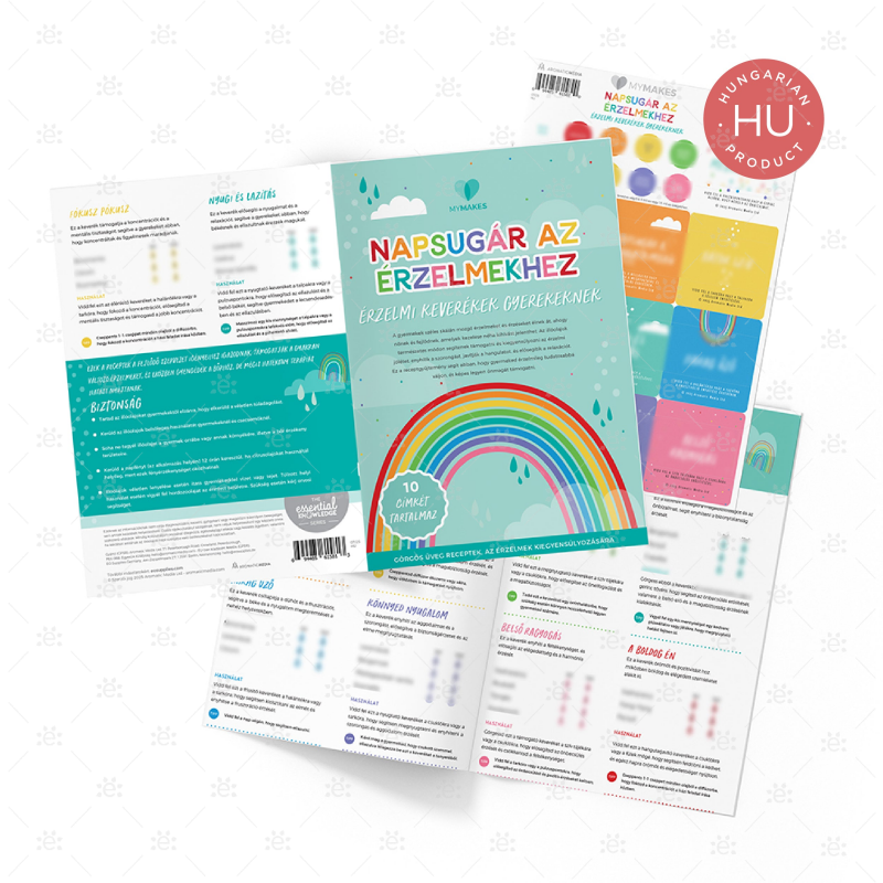 A Napsugár az érzelmekhez MyMakes brosúra 10 gyengéd, mégis hatékony receptet tartalmaz, amelyek segítik a koncentrációt, oldják a feszültséget, és támogatják az érzelmi egyensúlyt.